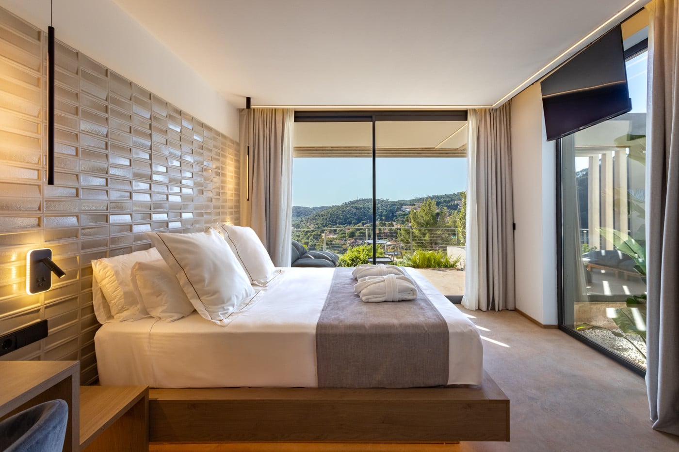 Es el momento de abrir las puertas de la habitación de nuestro hotel con encanto y disfrutar de la terraza, el jacuzzi exterior, la piscina privada, el jardín o sencillamente de unas bonitas vistas.