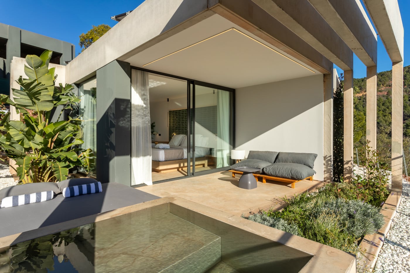 Sus Eco Smart Villas, amplias y luminosas, cuentan con terraza privada y algunas con piscina climatizada, ideales para desconectar en plena naturaleza.